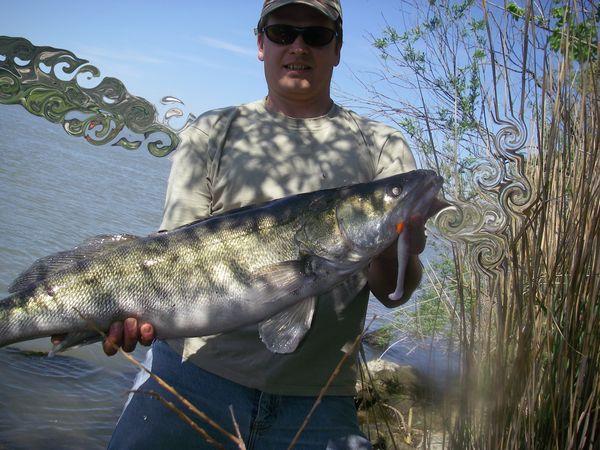 Encore un sandre de 94cm piqué avec shadyx, un shad de mon terroir(entre 10,5 et 11cm) couleur: ventre blanc et dos violet + paillettes argent holographique. |